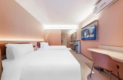 Located in Beijing, 2.7 miles from Qianmen Street, Hanting Hotel Beijing Guang'anmen has air-conditioned accommodations and a restaurant. The property is around 2.8 miles from Dashilan Street, 3.7 miles from Tiananmen Square and 4.2 miles from Temple of Heaven. The property provides room service, a 24-hour front desk and organizing tours for guests. At the hotel, rooms contain a balcony. The rooms will provide guests with a desk and an electric tea pot. A buffet breakfast is available at Hanting Hotel Beijing Guang'anmen. Wangfujing Street is 4.7 miles from the accommodation, while Forbidden City is 4.8 miles from the property. Beijing Capital International Airport is 21 miles away.