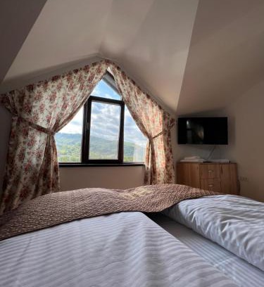Hanul Doctorului Badeni-Runcu Vila 2 is located in Fieni, just 24 miles from Stirbey Castle and 25 miles from George Enescu Memorial House. This property offers access to a terrace, free private parking, and free Wifi. The Sinaia Monastery is 24 miles from the vacation home and Pelisor Castle is 25 miles away. Featuring garden views, the vacation home is composed of 3 bedrooms and 2 bathrooms with a hair dryer and free toiletries. A flat-screen TV is featured. The accommodation is non-smoking. A continental breakfast is available at the vacation home. Guests can eat at the on-site restaurant. For guests with children, Hanul Doctorului Badeni-Runcu Vila 2 provides outdoor play equipment and a baby safety gate. Guests can swim in the pool with a view, relax in the garden, or go cycling or hiking. Peles Castle is 26 miles from the accommodation, while Dimitrie Ghica Park is 24 miles away. Brașov-Ghimbav International Airport is 58 miles from the property.