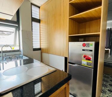 BathroomSlippers, Toothbrush, Bathtub or shower, Body soap, Free toiletries, Towels, Shower, Toilet paper, Toilet, Private bathroom, Conditioner, ShampooGeneralTrash cans, Fire extinguisher, Air conditioning, Smoke AlarmKitchenKitchen, Refrigerator, Washing machine, KitchenetteLiving AreaSofa, DeskBedroomLinens, Wardrobe or closetBuilding CharacteristicsPrivate apartment in buildingRoom AmenitiesClothes rack, Sofa bed, Drying rack for clothing, Non-feather pillow, Socket near the bedAccessibilityAccessible by elevatorPhysical distancingSingle-room AC for guest accommodation |