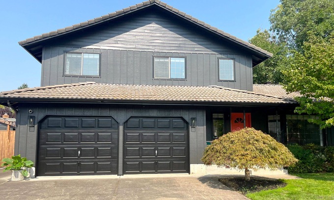 Welcome to your modern 4BR retreat in Eugene. Your family will love the unique charm of each room and the game-filled living areas. Whip up meals in your fully-equipped kitchen. Unwind on your patio, boasting a BBQ grill and hot tub. Explore Eugene from this prime location, near Autzen Stadium, Hayward Field, and a charming park. This is your perfect home away from home. If you need anything, just ask we'll go out of our way to ensure you leave with a happy heart! House Name by our son 4yr old!