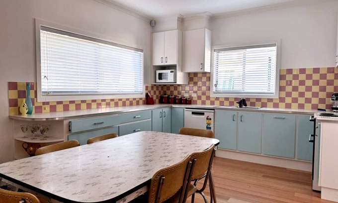 Step back in time to the charming vibes of the 1950s at this retro-inspired getaway in Shepparton, Victoria. Situated at 8 Lake Street, "Happy Stays" pays homage to the classic era of "Happy Days," blending vintage charm with modern comfort. 3 Bedroom home with a large bathroom to enjoy.