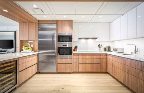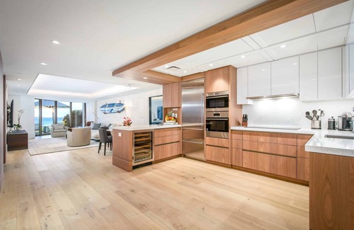 This oceanfront, newly-constructed, ground-level masterpiece offers floor-to-ceiling sliding window walls that create indoor/outdoor living space, a magnificent chefs' kitchen with Wolf, Sub-Zero and Miele appliances, including double ovens and a wine refrigerator, as well as a dining area for six. Additional features include three guest suites, each with a sleek, luxe bathroom (two have a king size bed with ocean views, the third has a king), a desk/work space, laundry room, air conditioning, a private, heated plunge pool and expansive, furnished lanai. This residence is steps from the beach and a 5-minute walk from the Hapuna Golf Course Clubhouse. Please note: An alarm will activate when the patio doors are open for more than 7 seconds. According to state and federal code, residential properties with direct access to a pool must be secured with an alarm.
