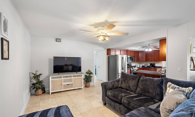This spacious 4BR, 2BA home sleeps 10 and is just 2 miles from beautiful Indian Rocks Beach. Relax in your private outdoor pool after a day of sun and sand. Enjoy nearby beach parks, local shops, fresh seafood restaurants, and family-friendly attractions. Ideal for families and groups seeking coastal charm.