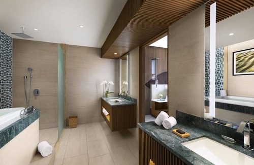 Hard Rock Hotel Los Cabos All Inclusive offers 639 air-conditioned accommodations, which are accessible via exterior corridors and feature minibars and laptop-compatible safes. Beds feature Egyptian cotton sheets, down comforters, and premium bedding. Flat-screen televisions are featured in guestrooms. Bathrooms include bathtubs or showers, bathrobes, slippers, and complimentary toiletries.
