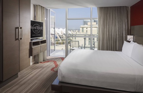 Hard Rock Hotel San Diego offers 420 accommodations with minibars and laptop-compatible safes. Pillowtop beds feature down comforters and premium bedding. Plasma televisions are featured in guestrooms. Bathrooms include showers, complimentary toiletries, and hair dryers.