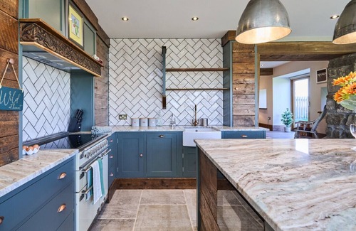 Set in a stunning rural location, the property is reached via a private lane on the owner’s farm, ensuring peace and tranquillity from the moment you arrive. Inside, traditional barn design elements, including exposed stone walls and wooden beams, have been maintained alongside contemporary decor and bespoke fixtures and fittings. The property boasts a real sense of spaciousness throughout, offering a tranquil rest where guests can unwind. On arrival, notice the well-placed utility-come-boot room on the ground floor, alongside a handy WC. You’ll then come across the first of three bedrooms, a handsome king-size room with its own en-suite bathroom facilities. At the heart of the house is the open-plan living space, with a lounge and dining area combined. This large room is truly impressive, with ample spots to curl up, a wood burner at one side, and panoramic views across the countryside. These views continue as you walk through into the kitchen, a well-designed space with a large kitchen island for casual dining and keeping the cook company. When it’s time to turn in, head upstairs to the bedrooms. You’ll find a large master bedroom with a zip-and-link super-king-size bed (can be made into a twin on request at time of booking), an en-suite bathroom and a sumptuous stand-alone copper bath. The second room is an equally comfortable double, also boasting its own en-suite.