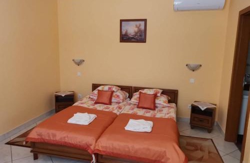 Harmónia Panzió in Sárospatak provides accommodations with a garden, barbecue facilities, and a shared lounge. This guest house offers free private parking and private check-in and check-out. Rooms come with a flat-screen TV with cable channels. The air-conditioned units have a fully equipped kitchen with a microwave and a fridge. The rooms have a kettle, a private bathroom, and free Wifi, while some rooms also offer a terrace and some have garden views. At the guest house, the units have bed linen and towels. There is a coffee shop, and a mini-market is also available. For guests with children, the guest house features an indoor play area and an outdoor play equipment. A water park is available on-site, and both skiing and cycling can be enjoyed close to Harmónia Panzió. Zemplin Castle is 17 miles from the accommodation.