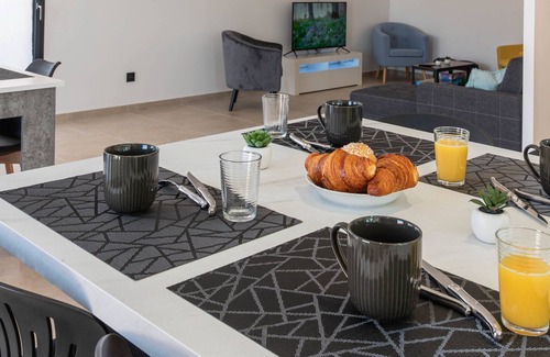 This beautiful single-story house offers a living space that combines elegance and comfort. The interior, both modern and bright, reveals a spacious living area with an open kitchen, ideal for convivial moments. It features 4 bedrooms equipped with double beds, including one particularly spacious room with two double beds, as well as a master suite with a dressing room and a private bathroom. Every guest can find their own private corner. Additionally, the living room is furnished with a high-quality convertible sofa, ensuring an extra comfortable sleeping option. The terrace and garden are ideal for moments of relaxation, providing a lovely view of the surroundings. Close to Limoges, Panazol becomes your starting point to explore the charms of the region.