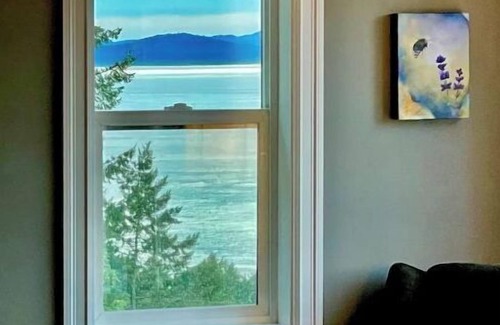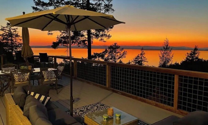 Winding through a Madrona forest hill on the coveted Westside of San Juan Island, Haro Sunset House greets you with sweeping views of Vancouver Island to the south and Salt Spring Island to the North. This home is known for it's stunning sunset views, peace, and tranquility. Enjoy amazing wildlife viewing, from whales to eagles. Haro Sunset House is located right above San Juan County Park for beach access and is minutes away from the iconic Lime Kiln Light House and State Park.