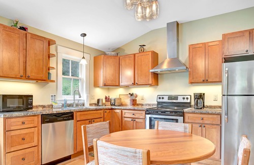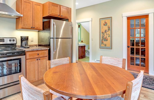 Just 5 miles to downtown Woodstock or Quechee. The spacious, light-filled, and sunny private guest quarters has the modern comforts for a great Vermont getaway - a large and well-appointed kitchen, comfortable air-conditioned living space, pleasing country setting, good privacy, and a spacious bedroom with darkening shades - all in a beautiful Vermont landscape. There is a queen sofa bed in the living room, perfect for any additional children, and a bonus storage room for luggage and extras. The living room Hunter Douglas privacy shades offer top-down/bottom-up screening, allowing you to enjoy the local view and maintain privacy. The nine-foot-plus high ceilings, southern exposure, and the hardwood flooring all give this private getaway a pleasant feeling of space and elegance. Bikers can store their bikes in the garage and enjoy the gravel roads in the area. These guest quarters are new in 2016, have a private entrance and generous parking, and are well-separated from the classic Vermont vernacular original 1840s farmhouse.