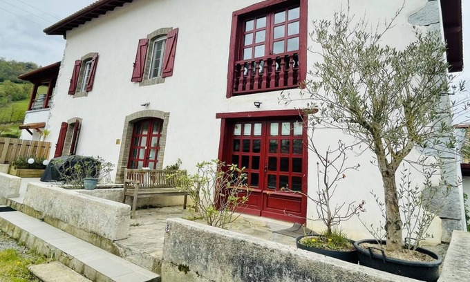 Pleasant apartment in a small condominium of 6 apartments, in the countryside, in the middle of the green meadows of the interior Basque Country (Saint Jean Pied de Port 10 mins away). On the paths of Santiago de Compostela, many walks and hikes in the surroundings will allow you to appreciate the beautiful landscapes that surround you. The accommodation (3-star comfort) occupies part of the house, on 3 levels, with a private enclosure at the back, opening onto a garden to be shared with the other tenants. The garden table and the barbecue will allow you to eat outdoors facing the hills. 2 spaces are reserved for you in the car park. Ground floor: Well-equipped renovated kitchen (induction hob, electric oven, microwave, fridge-freezer, dishwasher). Dining Area. Comfortable living room (TV, wood stove, wifi internet box). toilet. 1st floor: 1 bedroom (1 double bed, TV), shower room (washing machine), wc. Baby equipment. 2nd floor: 1 bedroom (1 double bed + 1 single bed), 1 bedroom (1 double bed + 1 single bed), bathroom with wc. CLEANING: the cleaning service is obligatorily invoiced, to be given on your arrival: 75 euros. Gas central heating at an extra charge of €8/day. Wood in supplement (1st outbreak offered). Possibility to rent sheets and duvet covers €15/bed. Rental of towels €5/person.