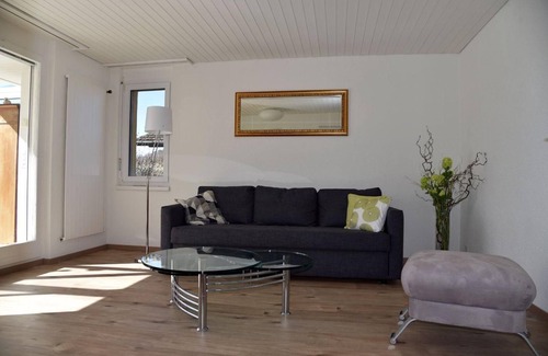 Haslers Hof is situated in an idyllic rural area in Dinhard between Seuzach and Thalheim in the Winterthur region. 8.5 km from the city of Winterthur and only 3.5 km from the Thur (river). Our farm is very easy to reach by train, just a 3-minute walk from Thalheim-Altikon railway station. The main occupation of our well-kept farm is farming and fattening cattle. For our guests we have a gently renovated holiday flat with a large garden. A true paradise for children, there are various small animals grazing directly in front of the flat and plenty of space to play. Our house is the starting point for many beautiful excursions. Such as the beautiful little town of Stein a. Rhein, the Rhine Falls and the rope park in Neuhausen, the Thurauen Nature Centre in Flaach, the Technorama and the Skillspark in Winterthur or Cony Land in Lipperswil and Lake Constance (Untersee from Stein am Rhein).