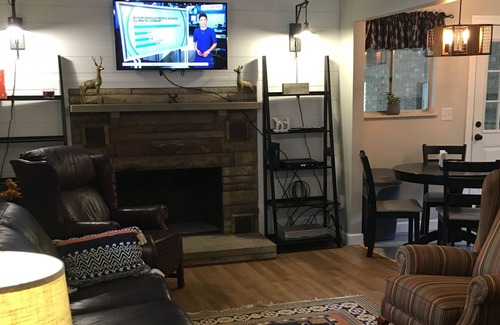Beautiful and updated full home for relaxing after riding the trails. Relax in an Adirondack chair with friends by the fire pit with free firewood. The gas grill, linens and towels are also provided. You will have ROKU tv, wifi and cable for staying in touch. The generous porch and covered stone floor patio make a great place for enjoying the sound of the babbling brook across the road. No need to trailer to get to the trails. Trail entrance is a mile away. Rock House, Devil Anse and Buffalo mountain are all connected and close by. Come see the wild horses, waterfall, and the Hatfield cemetery where Devil Anse is buried. House is convenient to town with several restaurants and gas, repairs and attractions such as a distillery, and jerky mom and pop home crafted business. Three bedrooms and two baths accommodate 6/7 guests.