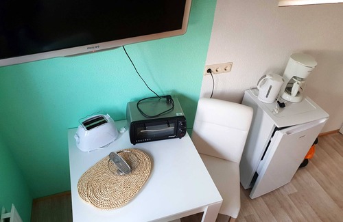 Quiet, cozy non-smoking apartment with terrace, kitchen, living room, bedroom, shower / toilet. The small separate kitchen is equipped with a stove. In the living room there is a couch with a sleeping function. In the garden there is a cozy seating area with a grill.