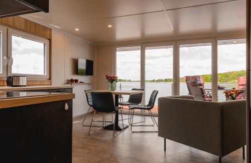 Haus auf dem See Elise, Matheo, Mads, und Jarle in Ferchesar offers a holiday home with a private beach area, sun terrace, and water sports facilities. Guests can enjoy a garden, restaurant, and free WiFi.Amenities and Facilities