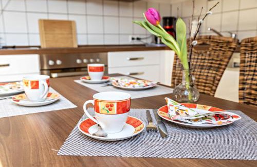 Providing a garden, Haus Elfi provides accommodations in Hausen am Tann. Both Wifi and private parking are available at the apartment free of charge. The property offers barbecue facilities and parking on-site. Offering mountain views, this apartment also has a satellite TV, a well-equipped kitchen with a dishwasher, an oven, and a microwave, as well as 1 bathroom with a shower and a hair dryer. The accommodation is non-smoking. Skiing, cycling, and hiking are possible within the area, and Haus Elfi offers ski storage space. Neue Tonhalle is 30 miles from the accommodation, while French Quarter is 31 miles away. Stuttgart Airport is 48 miles from the property.