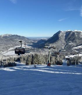 Haus Hochland - Großzügige Alpenwohnung im Dachgeschoss offers accommodations in Bad Kohlgrub, 14 miles from Glentleiten Open Air Museum and 17 miles from Burgruine Werdenfels. This property offers access to a balcony and free private parking. Mountain views are a highlight at the apartment's pool. With free Wifi, this 2-bedroom apartment provides a satellite flat-screen TV, a washing machine, and a fully equipped kitchen with a dishwasher and microwave. The accommodation is non-smoking. During the colder months, guests can enjoy winter sports in the surrounding area. Garmisch-Partenkirchen City Hall is 18 miles from Haus Hochland - Großzügige Alpenwohnung im Dachgeschoss, while Richard Strauss Institute is 18 miles away.