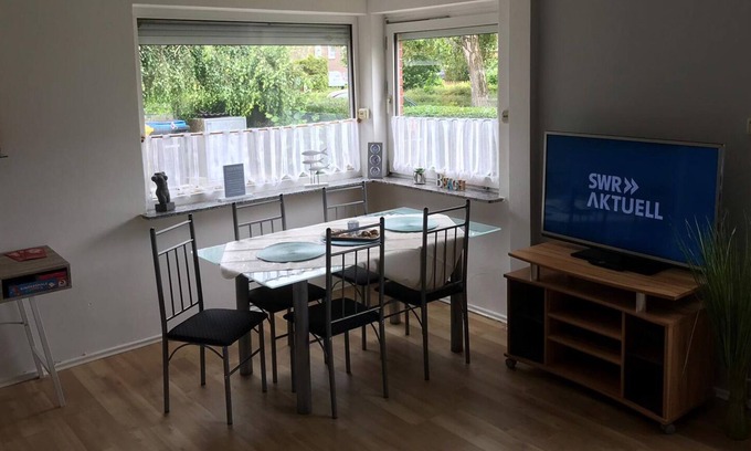 Haus Hölderlin living in the countryside means relaxing! Find us in the beautiful district Neuengroden. Our cottage apartment includes a complete apartment consisting of 2 bedrooms, 1 living room with sofa bed, kitchen, bathroom, hallway, and terrace. Linger in our several thousand square meters garden. We are in a good middle-class environment. Shops and bus stops are available in the immediate vicinity.