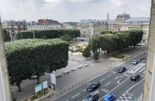Hausmannian app 140m2 4th and last floor, lift, located downtown facing the Palace of Fine Arts, close to cinemas and shops and metro, baby equipment (bed and chair and stroller) + TV in all rooms linens (sheets, towel, shower product, dish towel), non accessible handicape, wifi iron hair dryer work space for laptop