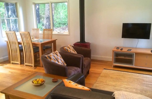 Only 2km from popular Berry, the Haven Hideaway is set amid wide lawns and stately gums, it has 2 king bedrooms, a spa bath, a lounge dining area with a full kitchen and a private deck with BBQ. Rates vary by day and season.