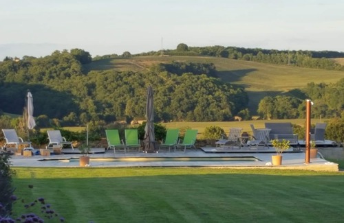 The cottage is set in 1 hectare of landscaped grounds with south facing terraces and a swimming pool which benefit from panoramic views over the undulating Gers countryside.