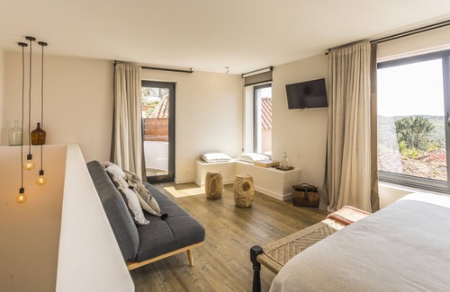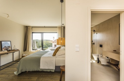 Biscaia itself is a charming village located in the heart of Cascais. It boasts the best of both worlds, with mountains on one side and the Atlantic Ocean on the other. With space for 8 guests, the Haven Villa features three sleeping houses that all share a common terrace and swimming pool - the hub of the villa. Each house has its own private bathroom and open-plan kitchen / living room with TVs in each and large dining tables that accommodate all the guests. There are two houses with one bedroom and one with two.