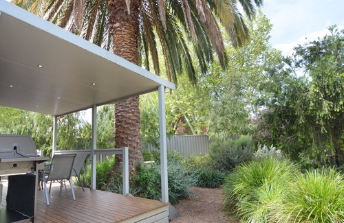 The main lounge area has two 3-seater leather couches, a new 50” LCD television, DVD player and DVD’s. The sunroom has a sofa (bed) that looks out to the garden. Double sliding doors lead out from the sunroom to a covered timber alfresco deck with a private view of the beautiful native garden. There is an outdoor setting of table and chairs, a coffee table set, and a large gas BBQ. Off-street parking is available under a carport and there is plenty of parking outside the property.