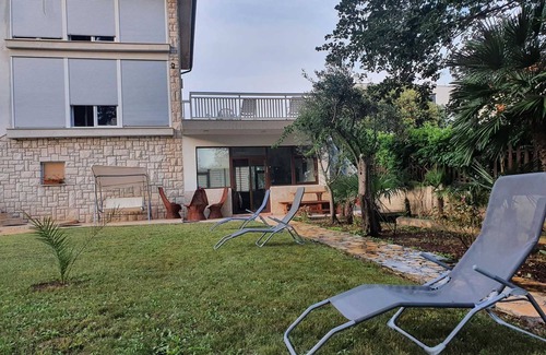 HAWAII One-Bedroom Apartment 7 is a 3 star Apartment. It is located in Banjole - small village 5 km from the town of Pula and 450 m from the nearest beach. Interior size is 45 m2. It is located on floor: 2. There is a balcony available. It is located on a different floor from the apartment. Bed linen and bath towels are provided by the accommodation itself. For all guests, there is available a shared garden. All guests have the possibility to use a common BBQ in the courtyard of the house.
