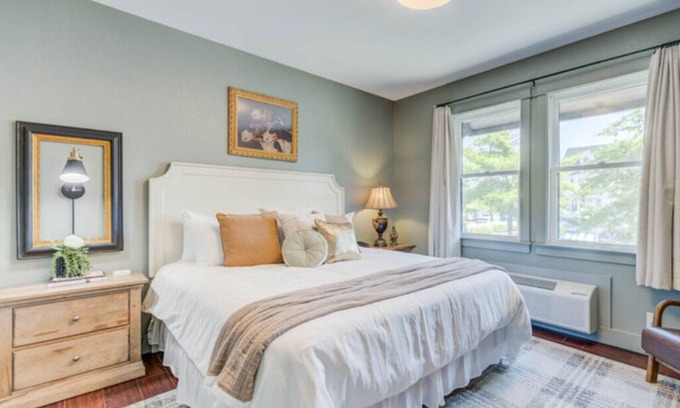 For your entertainment, the room includes a Smart TV and a selection of books about the Plott Hound, the state dog. The view from this suite overlooks the charming streets of downtown Manteo, providing a picturesque backdrop to your stay. This room adjoins Dawson's Hunting Retreat.