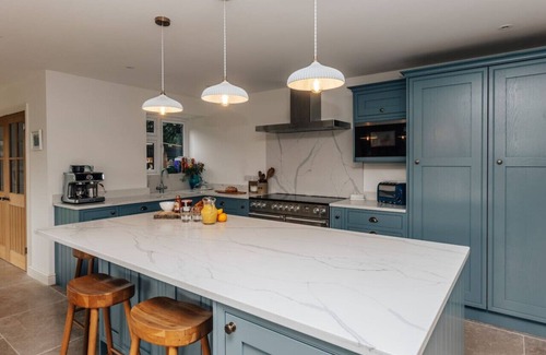 Escape to the countryside to The Hayfield, a charming newly refurbished house, nestled down a peaceful country lane. Downstairs you will find beautifully finished open plan areas, the heart of the home, where both families, friends and couples alike will undoubtedly enjoy being together, whether that’s perched at the large kitchen island while dinner is being prepared, playing in the games room or cosied up on the sofa watching a family favourite. Come the warmer months, the doors slide open to outside, allowing inside-outside living, with the patio terraces offering the ideal spot watching children happily explore the large garden and play on the swings and trampoline. There are four inviting bedrooms, a twin and king room on the ground floor and two double rooms on the second floor. The bedrooms have tranquil views over the adjoining fields. Set within a picturesque village surrounded by character cottages, and two village pubs within walking distance. Frieth is within a close drive to Henley-On-Thames, Marlow and the famous filming locations at Hambleden valley. London can be reached within an hour by car. You will be spoilt for choice with walks and cycle routes around the chiltern hills with a bridleway path right next to the house.