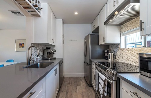 Condo completely remodeled and newly furnished in late 2017, this immaculate condo is just 2 blocks from Healdsburg's desirable downtown! Relax on stylish, comfortable furniture and enjoy high end linens. Sonos sound system and wall mounted TV for your entertainment needs with a sleek gas fireplace for cozy winter nights. Central heat and air along with dimmable lighting will ensure your environment is comfortable. The remodeled kitchen includes a built-in wine rack, quartz countertops and stainless steel appliances.