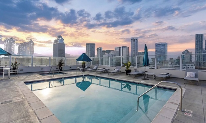Modern 1BR in the heart of Downtown with stunning skyline and ocean views! Enjoy a pool, gym, and free secured parking. Walk to the best restaurants, bars, and attractions. Ideal for business trips or romantic getaways. Fast Wi-Fi, full kitchen, and comfy living space with unforgettable views.