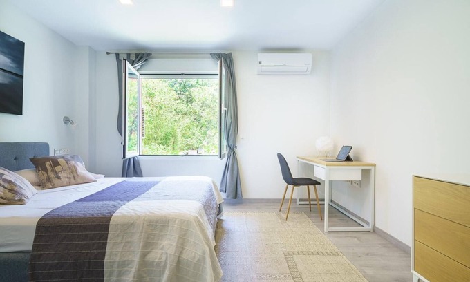 A privileged apartment overlooking a garden en the heart of Madrid.Public and low cost parkingThe location really can't be beaten. It's within walking distance to so much: the Royal Palace, the Prado and the Sofia Reina museums, as well as to the Plaza Mayor and parks. There's also a metro stop just outside the building that makes the whole city accessible. High speed Internet 300 MSPACE:The beds are very comfortable. It's on a busy street (downtown) but located in the back of the building, so there is no street noise and it is nice and quiet. The balcony shows a rooftop garden, and while you can't go out there, it's a nice space to look at and let the fresh air in. Each bedroom has its own courtyard, so opening the door, you can enjoy the fresh air with total silence.