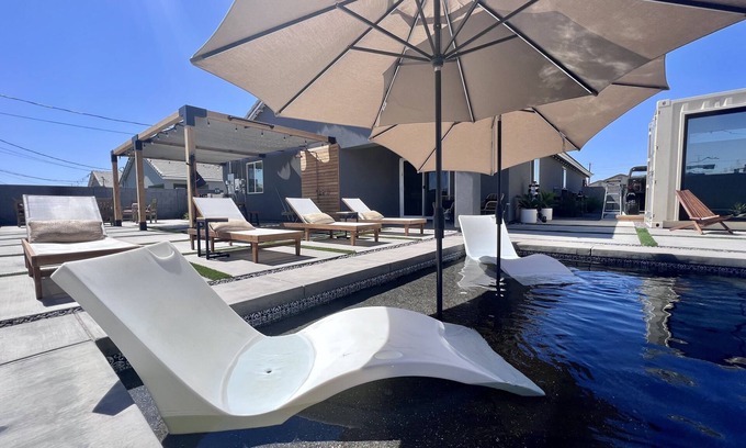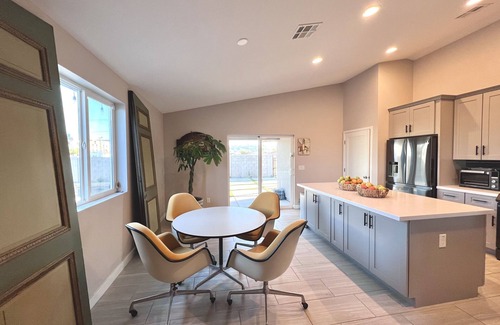 4 bedrooms 2 bath(bonus cabana with King bed available at additional charge). Sleeps 10 adults. Room for the entire family with a great back yard. Relax in the sun next to the modern heated pool (extra fee) @ $200 for 3 days. $350 for 7 days. Fire pit/ BBQ, outdoor shower, secured dog area. 85” Sony TV in living room to watch your favorite shows! TV’s in 4 bedrooms. Exercise area in backyard with elastic bands, free weights and pull-up bar. Office area with wireless laser printer. Fully stocked kitchen to prepare those family meals. K8 Enagic Kangen Water Filtration Machineon tap and stocked glass bottles in fridge. Minutes to South mountain park & preserve for great hikes and beautiful sunset views w/horseback riding! 7 minutes to airport, 12 minutes DT Phoenix & Tempe. 20 minutes to old town Scottsdale/ fashion square. Great authentic Mexican restaurants nearby.