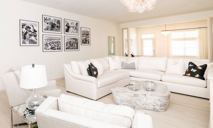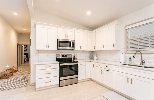 The bedrooms (2 Kings, 3 Queens) each boast the comfiest bed linens we could find, with fluffy pillows as well as all 4K Smart TVs. The bathrooms are well lit, spacious, and sparkling clean.