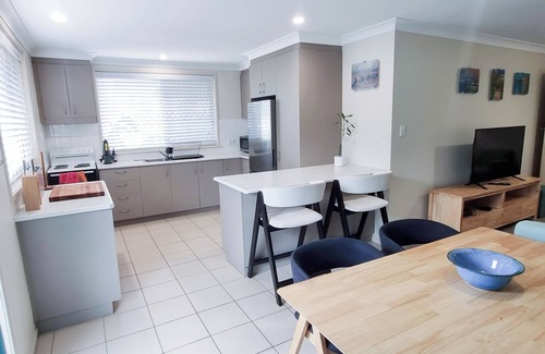 Your family will be close to everything when you stay at this centrally located place. This cozy retreat is just a short walk to the stunning boardwalk, river, beaches, shops, and cafés. Perfect for a relaxing getaway, it offers a comfortable stay with everything at your doorstep. Enjoy the scenic coastal charm, explore the town, or unwind in a peaceful setting. Whether you're here for adventure or relaxation, this is the ideal spot to experience Urunga’s best!