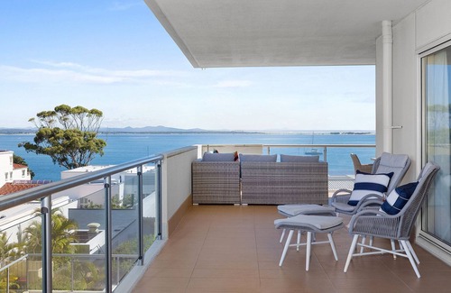Imagine waking up to magnificent bay views, sipping your favourite brew on a balcony while planning your perfect day. Heart & Shoal is the ultimate destination for those seeking a break that ticks all the boxes. Overlooking the golden arc of Shoal Bay's beach, this prestigious accommodation offers stunning vistas, top-notch facilities, and a prime location near cafes, shops, and restaurants. Whether you're a family, a group of friends, or attending a nearby event, Heart & Shoal is the ideal coastal retreat.