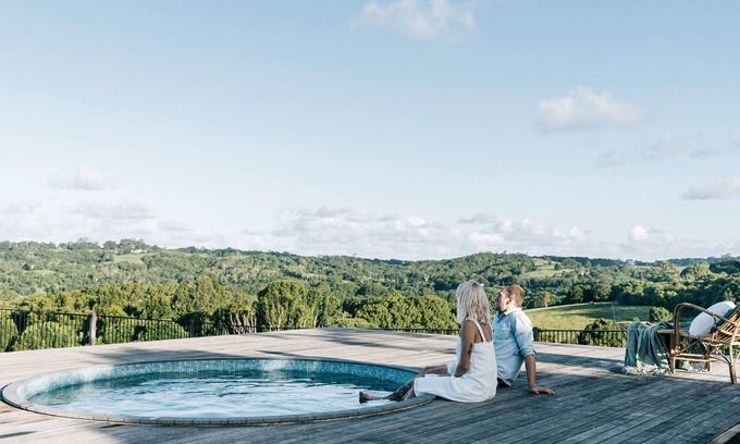 Heartwood Farm has a full kitchen with dishwasher, shower, clawfoot bath, wifi, television, Netflix, Bluetooth speaker, picnic rug and heated plunge pool overlooking the Byron Bay Hinterland. There is ample parking, including areas for those towing a boat or caravan.