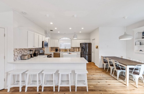 • Fully equipped with a refrigerator and ice maker, dishwasher, microwave, oven, electric stove, toaster, and blender.