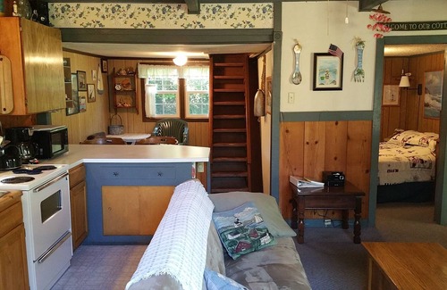 The one bedroom cottage provides space for five with a queen bed in the main bedroom, single bed sleeper sofa, and also has a large sleeping area in the attic/loft equipped with a queen size futon and extra matteress. The home offers a south facing deck which is private and wind protected.