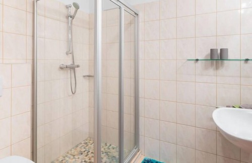 3-room apartment 60 m2 on 1st floor. Modern and cosy furnishings: living/sleeping room with 1 double sofabed, dining table and cable TV (flat screen), DVD. Exit to the balcony. 2 double bedrooms, each room with shower/WC. Open kitchen (oven, dishwasher, 4 ceramic glass hob hotplates, toaster, microwave, freezer, electric coffee machine). Balcony 7 m2. Terrace furniture. View of the mountains. Facilities: Internet (WiFi, free). Please note: non-smokers only. 1 small pet/ dog allowed. 50628-000762-2020