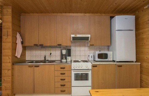 Log/wooden cabin 1997, living room/kitchen with convertible sofa, bedroom with 2 beds, sleeping alcove (curtain) with convertible sofa, sauna, dressing room, washing room (toilet), veranda.