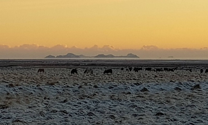 In the summer you can see horses, cows and sheep over the fence, but we are farmers and raise all of these animals. In the winter you can go out on the terrace and see the northern lights.