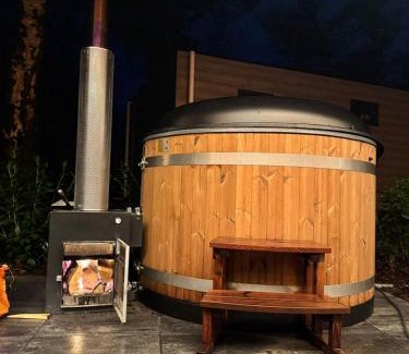 Media & TechnologyFlat-screen TV, TVGeneralFire extinguisher, Heating, Smoke Alarm, Air conditioning, Trash cans, Private entranceBathroomBathtub or shower, Towels/Sheets (extra fee), Hairdryer, Toilet, Private bathroom, Towels, Toilet paperActivitiesHot tubKitchenDishwasher, Oven, Stovetop, Coffee machine, Kitchenware, Refrigerator, Wine glasses, Electric kettle, Kitchen, Dining tableLiving AreaSofa, Fireplace, Dining area, Sitting areaViewGarden view, ViewBedroomLinens, Wardrobe or closetOutdoorsTerraceAccessibilityRaised toilet, Entire unit located on ground floorBuilding CharacteristicsDetachedRoom AmenitiesSocket near the bed, Drying rack for clothing, Hypoallergenic pillow, Sofa bedPool and SpaPool towels |