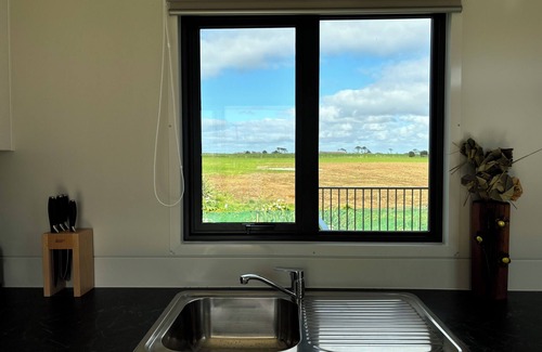 Escape to a place of calmness in fresh Farm air. This Tiny Home has two comfortable double beds and a fold out sofa. Has a outdoor bath that can be enjoyed at night looking at the stars.
