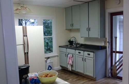 Heritage is recently refurbished, however this 200 year old landmark is the oldest cottage on the lake. If you are looking for luxurious accomodations this is not the place. The main cabin was built around 1820 and pulled behind horses across the frozen lake and placed atop the hill on Baker Point overlooking the lake. The floors are slanted and windows are crooked. We love it. Nestled among the pines the lumber jacks picked this beautiful site for good reason. The Captains Quarters includes a brand new California King bed and a day bed for a child. The Common Quarters is one large room with 2 queen beds and 2 twin beds. Be aware that the staircase to the Common Quarters is steep as it is original. Small children should not attempt to climb unaccompanied by an adult. Heritage Includes a 50 inch Smart HDTV and Wifi, new refrigerator, old stove and pretty much everything you need in the kitchen and bedrooms. Also includes nonexclusive use of the fire-pit, dock, 2 kayaks and the canoe which are shared by Eagles Nest which is also located on Baker Point. Heritage has priority use of the canoe and kayaks and Eagles Nest has priority use of the fishing boat. Heritage is not a year round home and is only suitable for living before the temperature drops. No AC, no insulation, but lots of fans and lake breeses. Although Eagle's Nest is new and also on the property, Heritage is where our family stays every summer. We have been on the lake for 130 years and been spending summer's in Heritage for about 60 years so please help us keep the place kept up and let us know immediately if an issue arrises. Wildlife abounds. Deer, raccoons, eagles, ducks, squirrels and chipmunks are a part of daily life here. Be aware that bears, wolves, cougars and field mice can make the rare appearance as well so take care not to invite them. For cold weather months please check out Eagles Nest. Extremely peaceful yet only 3 miles by road and 1/2 mile by boat to Restaurants, Taverns, Dairy Queen, Coffee Shop, Groceries, gas station, a boat landing, and Public Beach with Playground.