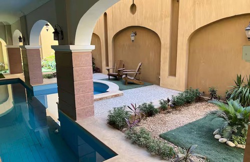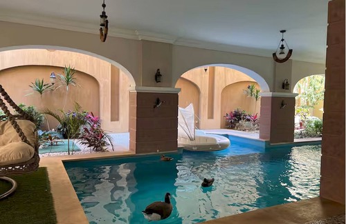 Looking for a cozy stay in central Egypt, there is no better place to book for friends, families, and small gatherings. With a magnificently decorated interior and marvelous hand-crafted wood features, it's the perfect stop to enjoy the rich culture of Egypt. With private patio and swimming pool, there is no better place to experience the best weather Egypt has to offer. You will get to enjoy a luxurious spacious place that can accommodate as many people as you can invite!