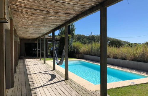 Casa de campo en barrio tranquilo frente al mar , con seguridad 24 hs ,ideal para descansar ,a 10 km del balneario José Ignacio y de la Barra. Casa confortable , cálida y acogedora, adaptada para disfrutar el verano o el invierno .Piscina climatizada y canchita de fútbol en terreno lindero propio.
