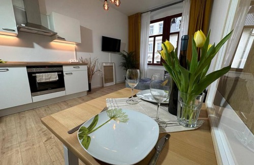 Herrliches wohnen mit Teichblick is located in Altenburg, just 20 miles from Gera Central Station and 20 miles from Gera Culture and Congress Center. Private parking is available on site at this recently renovated property. Altenburg Gera Theater is 21 miles away and Otto Dix House is 21 miles from the apartment. With free Wifi, this 1-bedroom apartment offers a flat-screen TV, a washing machine, and a fully equipped kitchen with a dishwasher and oven. Towels and bed linen are featured in the apartment. The accommodation is non-smoking. Guests can also relax in the garden. Zoo Gera is 21 miles from the apartment, while Sachsenring is 22 miles away. Leipzig/Halle Airport is 47 miles from the property.