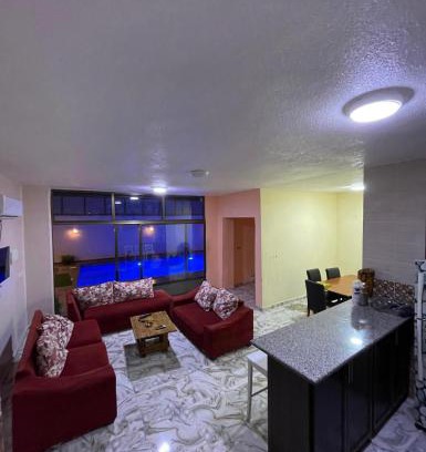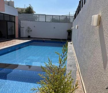 Providing a garden, Hewaimel chalet villa provides accommodations in Ash Shāghūr. This property offers a private pool and free private parking. Allenby/King Hussein Bridge is 11 miles from the chalet and Bethany Beyond the Jordan is 12 miles away. Opening onto a terrace with garden views, the spacious air-conditioned chalet consists of 1 bedroom. There is an on-site bar, and you can also make use of the kitchen facilities. Mount Nebo is 13 miles from the chalet, while The Greek Orthodox Basilica of Saint George is 19 miles away. Queen Alia International Airport is 28 miles from the property.